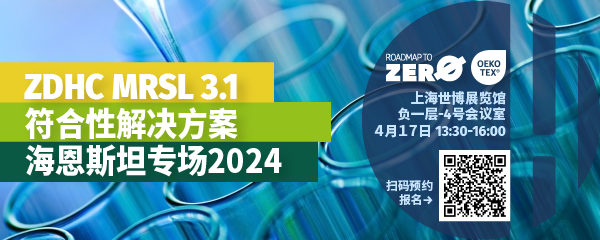 4月17日,海恩斯坦作为ZDHC认可的MRSL符合性评估机构,将联合ZDHC于Interdye染料展举办ZDHC MRSL符合性解决方案研讨会。