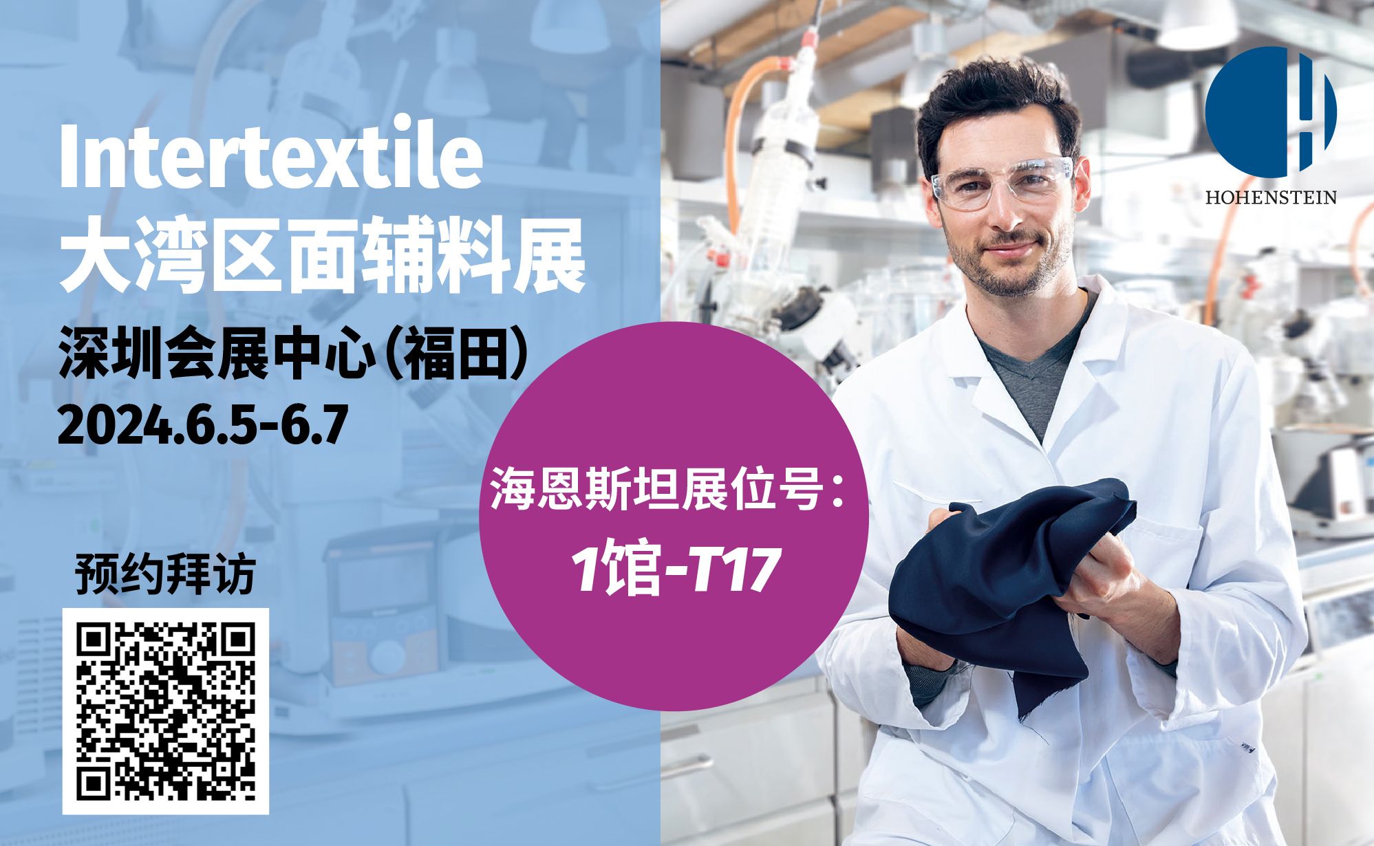 6月5日至7日,海恩斯坦在2024大湾区国际纺织面料及辅料博览会与您不见不散!!扫描下图二维码,预约来海恩斯坦展台1馆-T17拜访,可领取精美礼品一份哦~