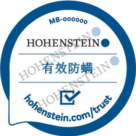通过测试后产品可获得海恩斯坦质量标签“有效防螨”