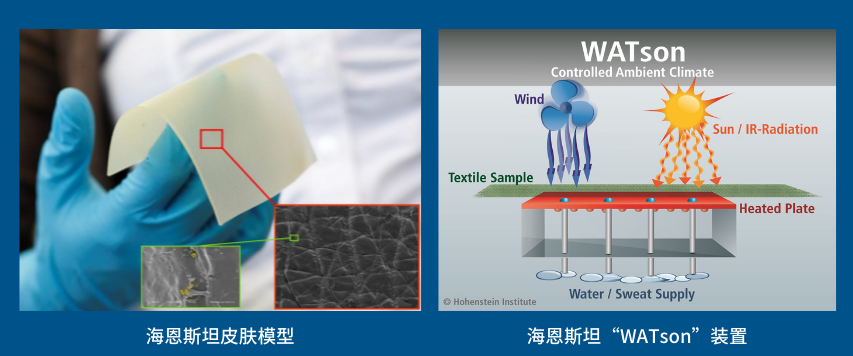 海恩斯坦根据DIN EN ISO 11092标准,在皮肤模型上测量热量和水分的传输过程,模拟不同强度的汗液,并设定相应的参数(如隔热、干燥时间)。此外,还根据相应参数考虑并定义穿戴者的不同活动水平以及对应的不同出汗情况,采用五种不同的测量值确定纺织品的皮肤触感。