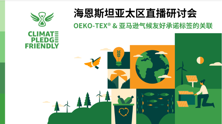 为帮助OEKO-TEX®获证企业清晰了解亚马逊气候友好承诺及申请流程,作为OEKO-TEX®创始人及官方发证机构,海恩斯坦将于6月6日举办亚太区直播研讨会,解析"OEKO-TEX®与亚马逊气候友好认证的关联"。