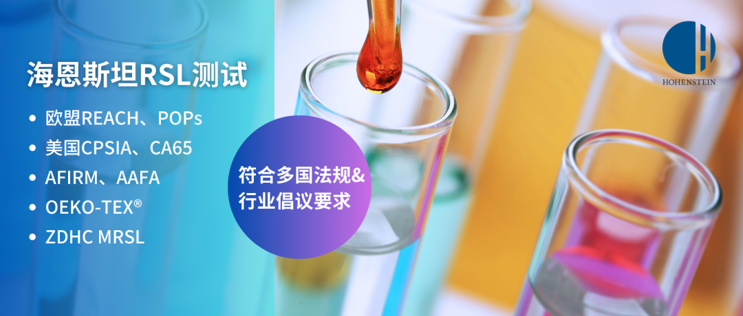 作为经德国认可委员会(DAkkS)认可的独立检测机构,海恩斯坦时刻关注全球业内法规动态,可根据全球多国标准如欧盟REACH、POPs、美国CPSIA、CA65以及行业组织AFIRM、AAFA、OEKO-TEX®、ZDHC MRSL等要求提供广泛的测试服务并出具测试报告,帮助企业基于具体的产品需求和供应链风险制定测试方案,为其规范供应链,避免产品召回。