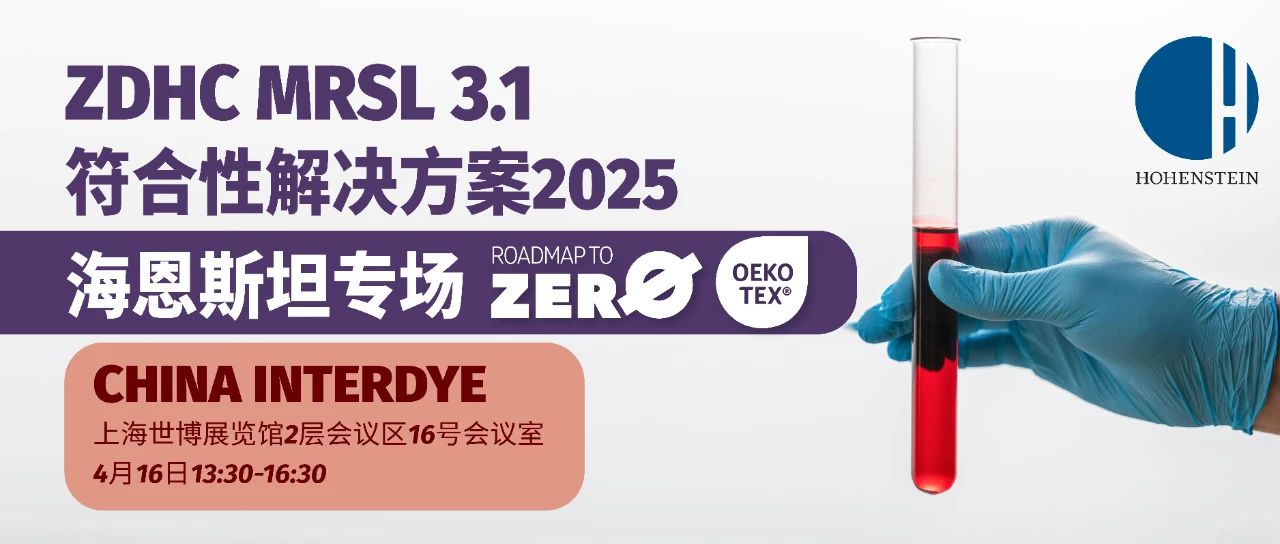 第24届国际染料展将于4月16日-18日在上海世博展览馆举办,海恩斯坦作为ZDHC MRSL符合性评估机构,将联合ZDHC在世博展览馆共同举办“ZDHC MRSL 3.1符合性解决方案2025”化学品专场研讨会,届时ZDHC东亚区高级执行经理Shinne Li将与会进行分享,我们还为每位现场参会人员准备了定制好礼和精美茶歇,诚邀您来报名参与!