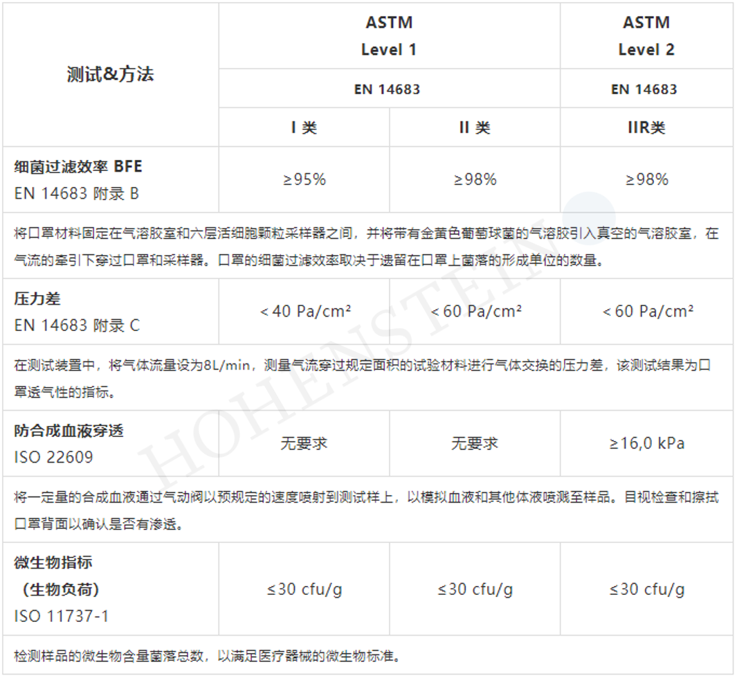 海恩斯坦医用口罩测试要求及方法说明