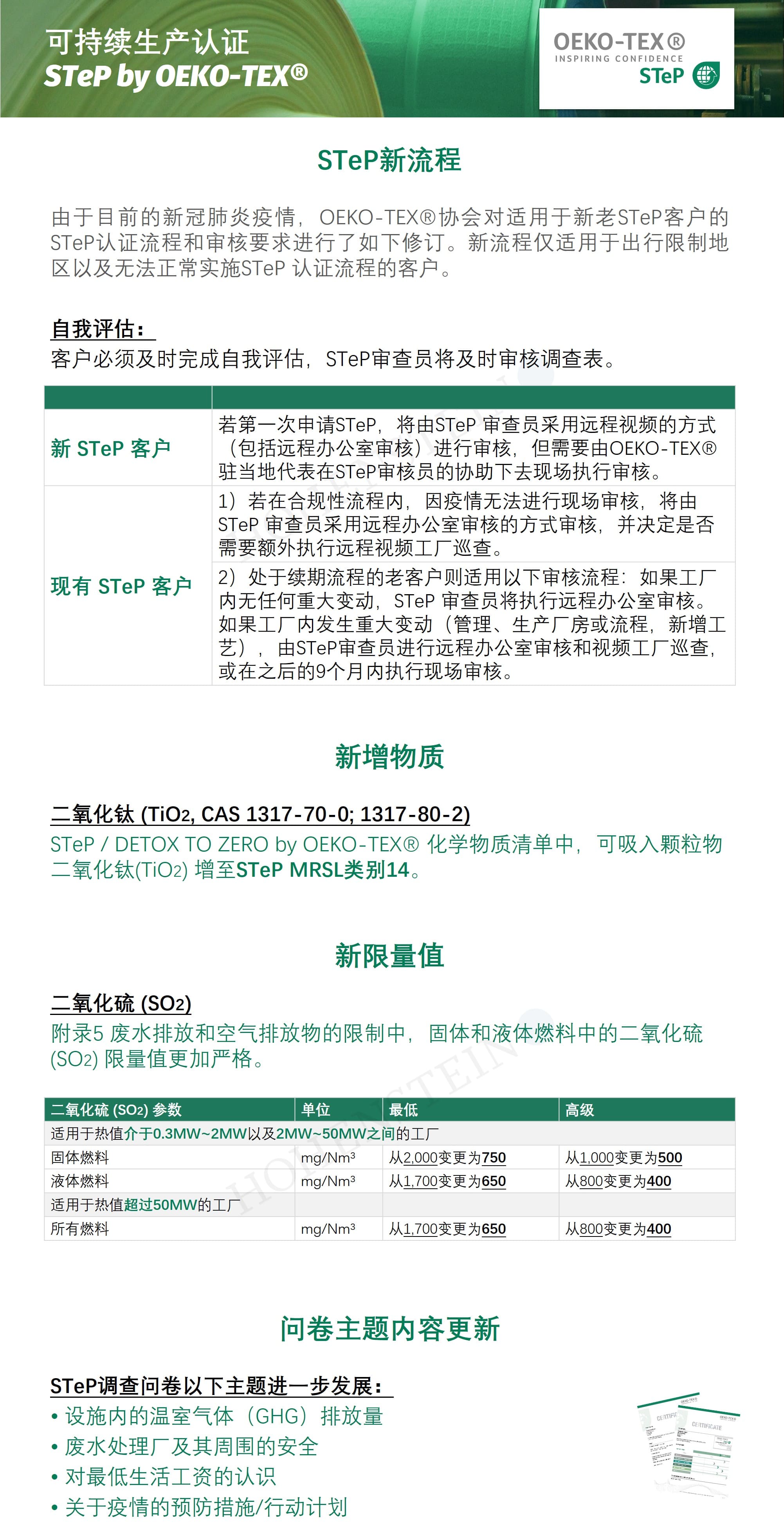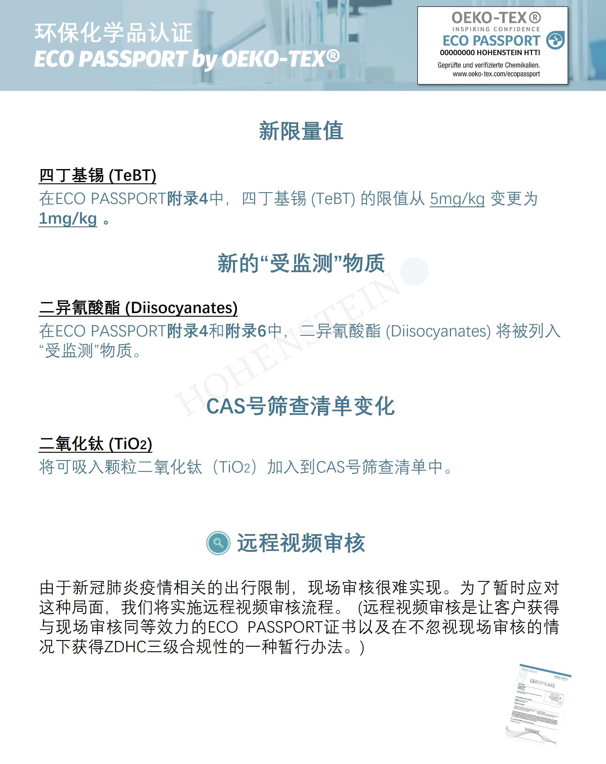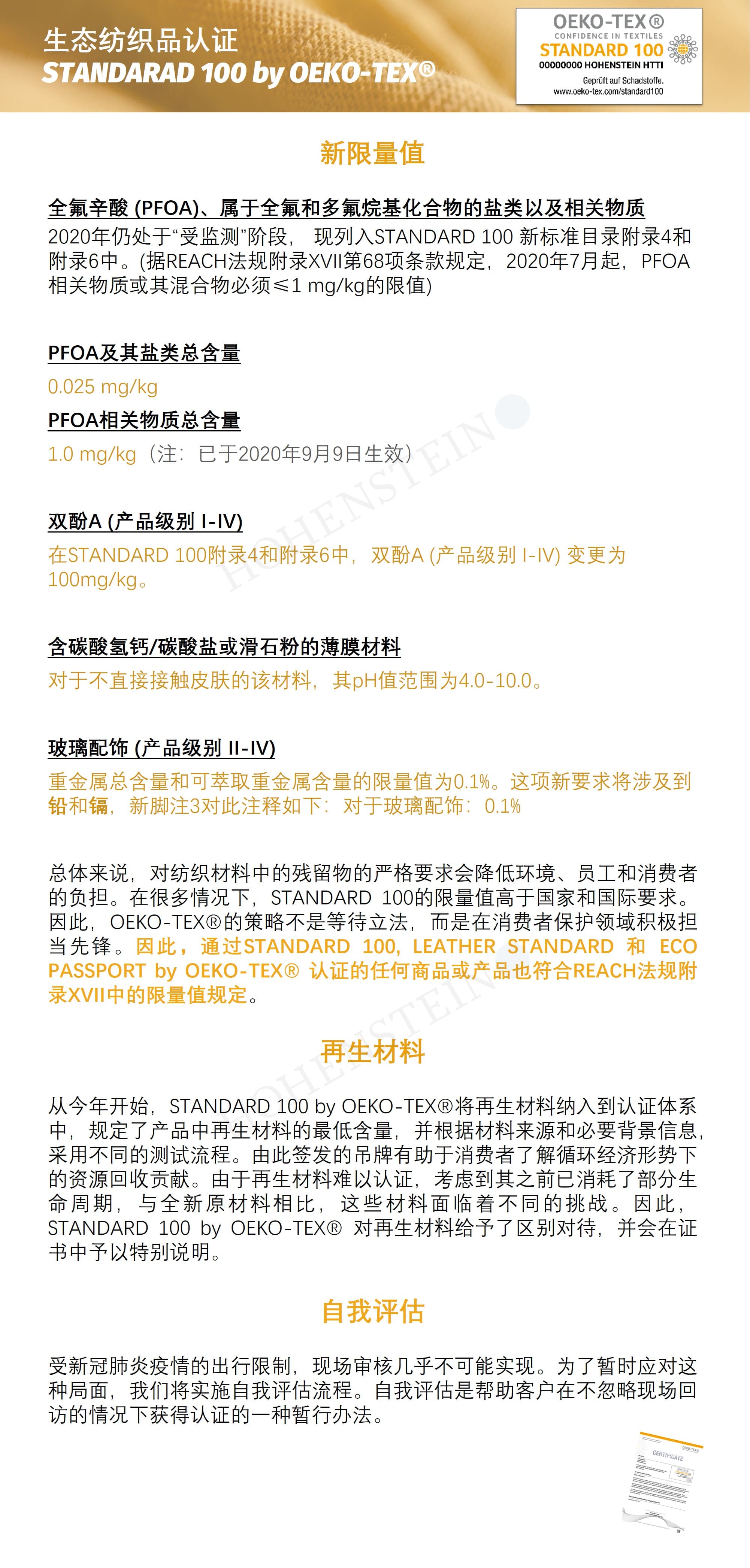 作为OEKO-TEX®创始人和官方发证机构,海恩斯坦将在下文具体概述此次更新的重要内容: